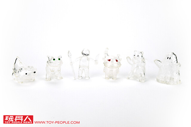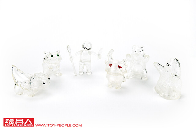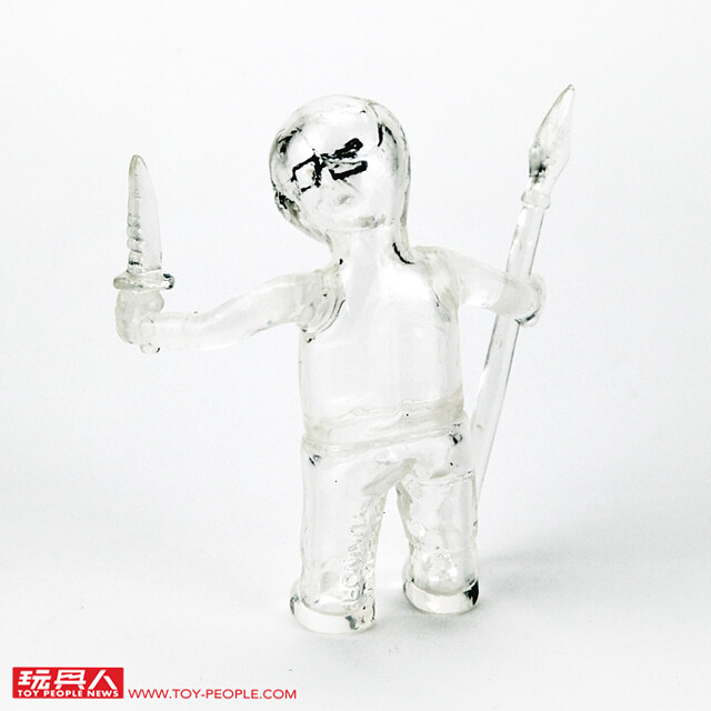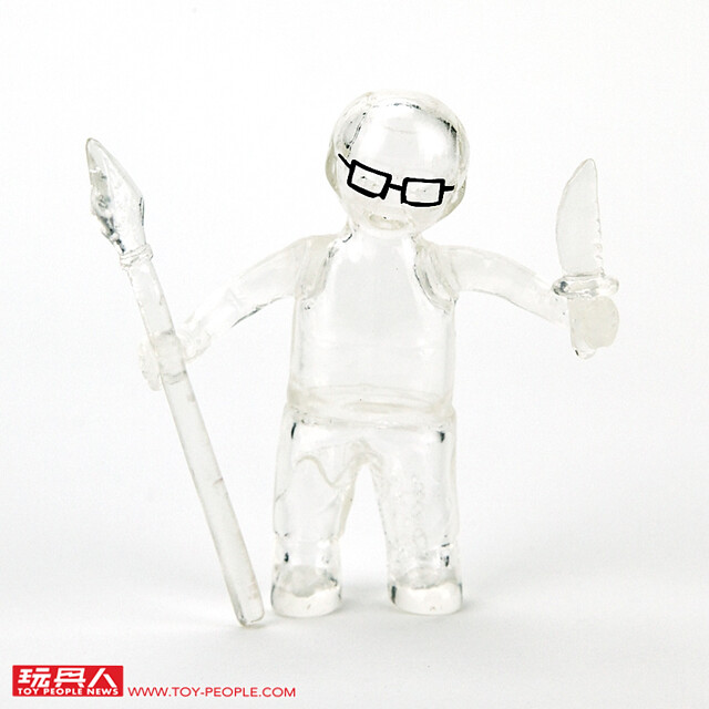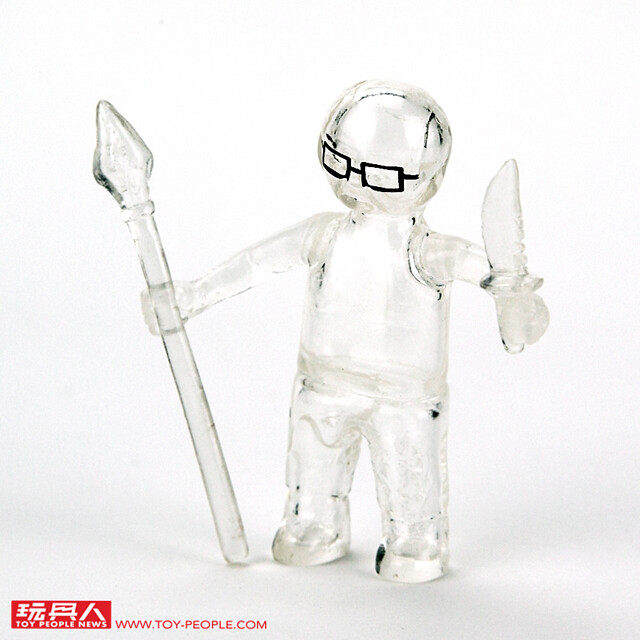 ▼ 設計師Dehara 桑創作出來的上班族大叔「Satoshi」角色可說是許多玩具人的愛啊,療癒的風格可是讓小編超級喜歡呢。這次,狩獵怪獸的獵人就是由Dehara 桑所創作出來的「Satoshi Yamamot」來當壞人啦!(大誤~~)透明的身軀,一手拿刀、一手拿矛,臉上還有設計師手繪的眼鏡,實在是太讚啦!