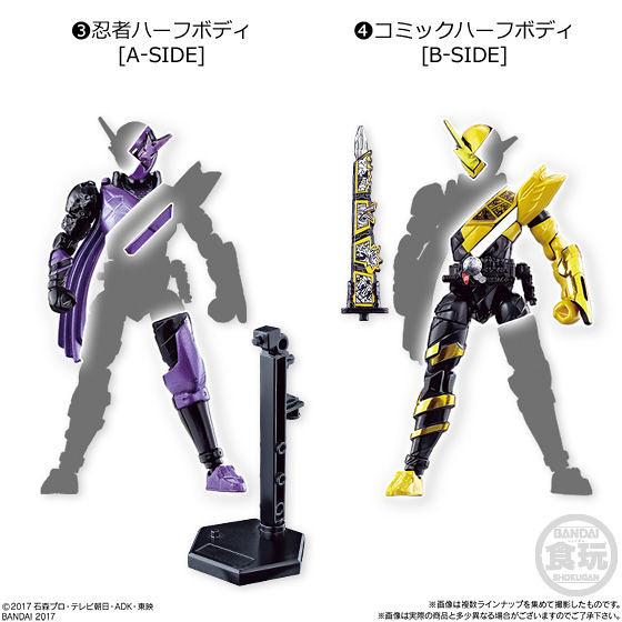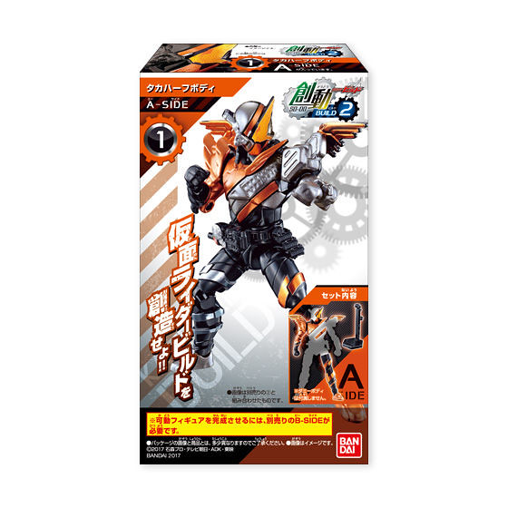 這次第二彈一樣預計將收錄《假面騎士Build》特殊使用藥水瓶子,以兩種類元素的配件,可以組成劇中所出現的三款不同型態,例如「鷹格林機槍型態(ホークガトリングフォーム)」、「忍者漫畫型態(ニンニンコミックフォーム)」與「火箭熊貓型態(ロケットパンダフォーム)」等等,以及神秘敵人惡役騎士的「夜霸(ナイトローグ)」也收錄於這次的第二彈當中,喜愛《假面騎士》系列的玩具人可以參考一下歐!
