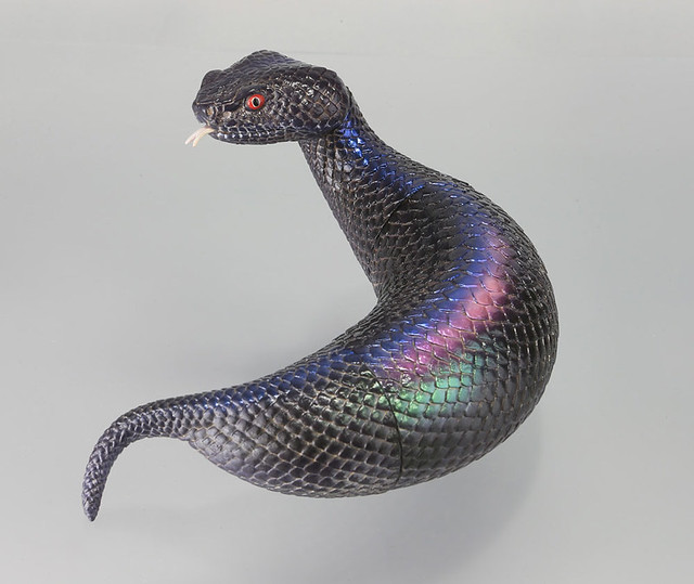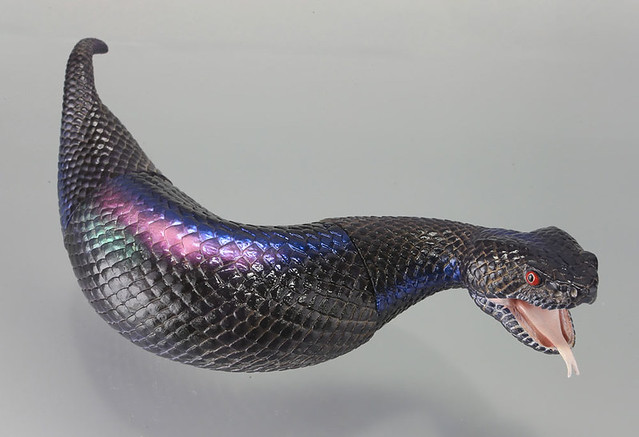 新銳動物造型師「(吉良かずや)」來擔任原型製作,將這隻江戶流傳至今的UMA立體化,作品參考了過去的目擊情報進行多項考證,融入了毒蛇攻擊性的頭部特徵,下顎具有開合關節,身體則分為四段可動關節,這次特別以顯眼黒虹色的反射塗裝來表現,鱗片以及花紋都非常精緻,喜愛《SOFUBI TOY BOX》系列的玩具人可以參考一下歐!
