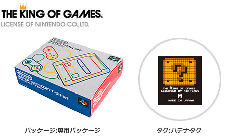以「任天堂」授權商品為主題的日本廠牌EDITMODE,旗下最具知名的服飾品牌「THE KING OF GAMES」,宣布將推出以「超級任天堂」包裝圖樣為設計的T恤,並將使用「超級任天堂」包裝設計為T恤的包裝盒,滿滿懷舊氣氛的設計,絕對值得超任迷們擁有!