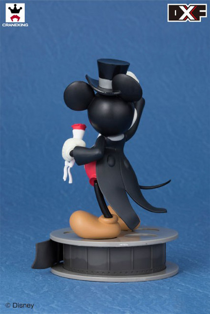 手上拿哲一束鮮花,身上穿著絲綢帽子和盛重典禮的燕尾服裝,在底座的部分是以有"米奇(MICKEY)"英文字樣的早期電影拍攝膠捲來表現,隨著電影文化的發展而不斷進步,這次也特別顯示米老鼠在電影的主題印象,預計將會推出約有兩款不同配色,有興趣的玩具人可以選擇自己喜歡的配色購入,喜愛迪士尼動畫角色《米老鼠》的玩具人千萬別錯過了啊!