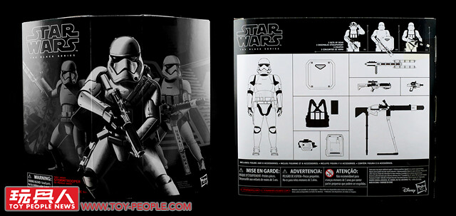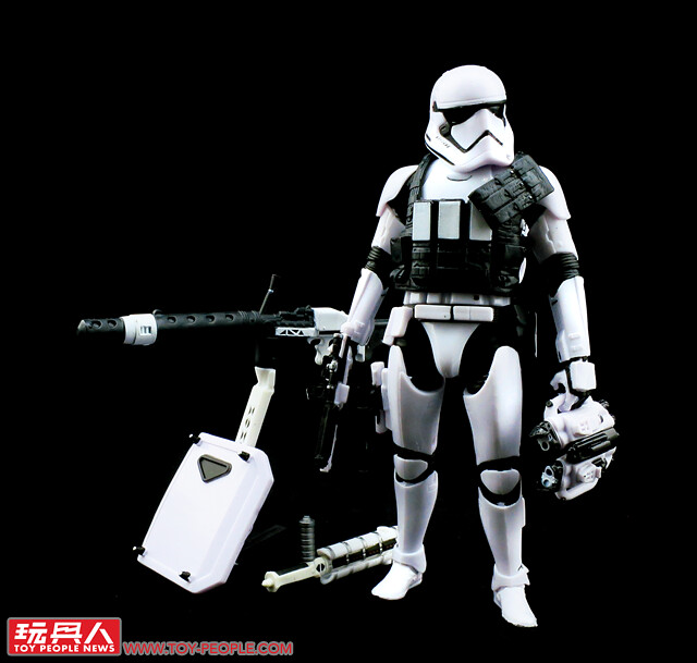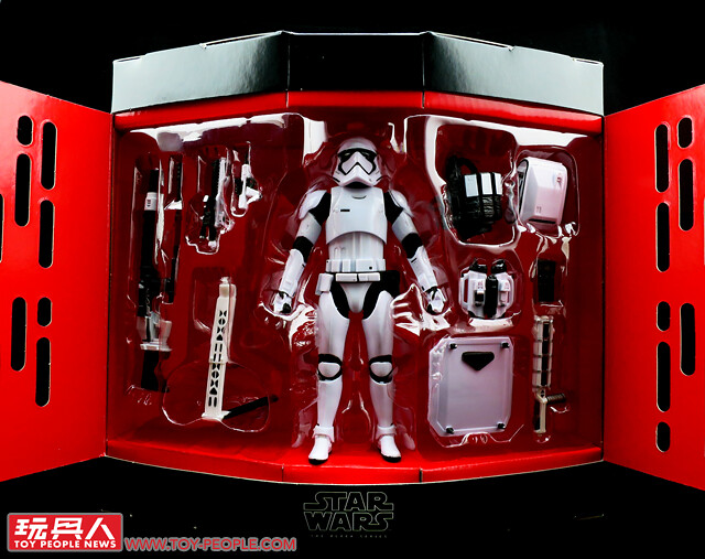 順應電影第八部曲《最後的絕地武士》的到來,孩之寶最受歡迎的黑標6吋可動人偶系列,也推出了第一軍團風暴兵的終極豪華版本,內容收錄了一位風暴兵素體、以及電影中登場的各種武裝,包括了標配的F-11D爆能來福槍(F-11D blaster rifle)和SE-44C爆能手槍(SE-44C blaster pistol)、重型機槍FWMB-10速射爆能槍(FWMB-10 repeating blaster)、近戰用的Z6鎮暴甩棍(Z6 riot control baton)和鎮暴盾(Riot shield)、除了各式槍械,基本配備像是戰術背心、生存背包和折疊式的雙筒望遠鏡也都收錄其中,超級豐富的裝備和高自由度的穿搭組合,絕對是白兵喜好者不容錯過的最佳選擇!