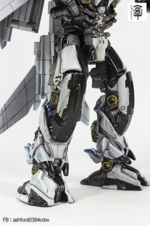 腿部檢視,很可惜這部分沒有純黑色狂派標誌水貼,用其它顏色又過於奇怪,所以還是保持素面狀態比較乾淨囉
