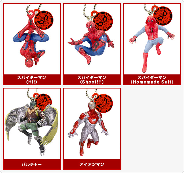 相信許多玩具人都有收藏《蜘蛛人:返校日》的相關周邊或是玩具吧~會不會想要連外出都帶著他們呢?日本TAKARA TOMY 玩具公司旗下轉蛋品牌「T-ARTS」以今年火熱的漫威英雄電影《蜘蛛人:返校日》為題推出角色吊飾轉蛋作品,小巧的尺寸非常適合掛在隨身用的包包上,搭配他們充滿躍動感的姿勢,彷彿就在你的背包上展開決鬥一樣!!