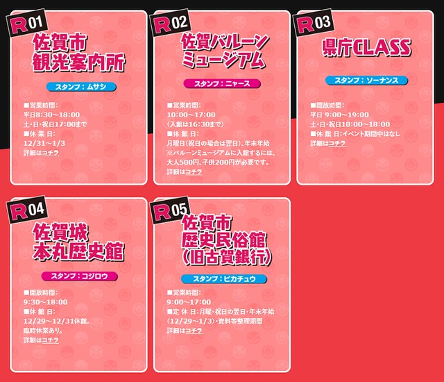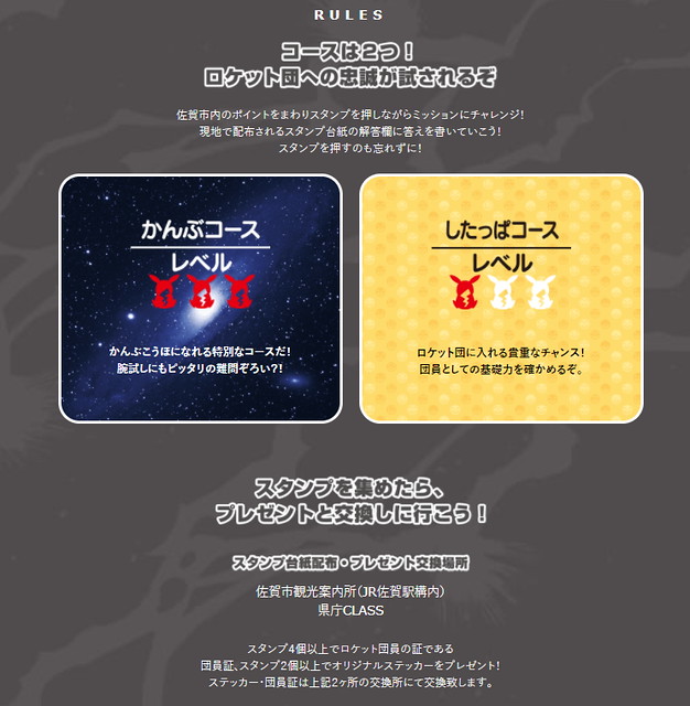 在活動期間,佐賀市內將會出現 5 處任務地點,只要前往任務點參與問答挑戰並收集一定數量的紀念章就能獲得火箭隊團員証,透過團員証還能換取精美原創貼紙唷!這些火箭隊相關問題相信對於《精靈寶可夢》的觀眾來說是輕而易舉呀~此外只要到市內 9 家合作餐廳用餐,也能獲得紀念章喔!
