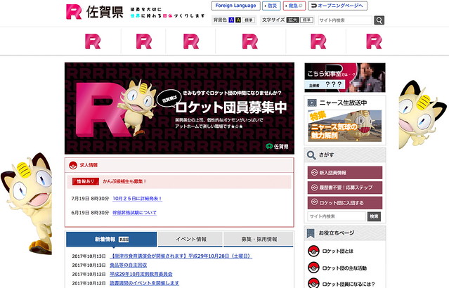 ▼ 日本佐賀縣政府官方網站突然出現了火箭隊的喵喵,好奇點下去的話...。