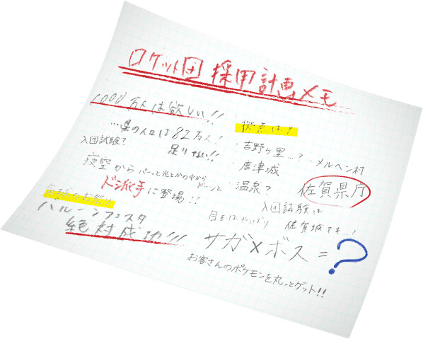 火箭隊也不小心把計畫內容上傳一併上傳,上面寫著預計招募 1000 萬人!但佐賀縣總共也只有 82 萬人。據點似乎決定設在 佐賀縣政府!?而且要將開著那著名的「喵喵熱氣球」降臨現場呀!