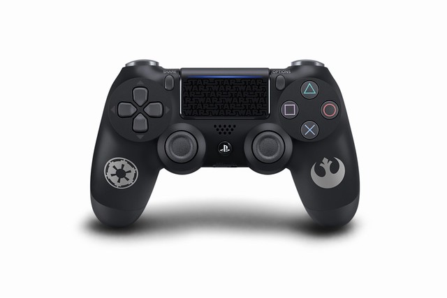 不知道各位玩具人還記不記得當初與《星際大戰:戰場前線》同步推出的「黑武士機」,真的超帥氣~而這次的同捆包主機是更高階的PS4 Pro 版本,在機身上也有特殊的式樣,以「反抗軍」、「銀河帝國」、特種部隊「煉獄小隊」的徽章為設計主題,搭配典雅的黑色相當有質感,附屬的DS4 無線控制器除了左右各有帝國、反抗軍的標誌外,觸控板也交疊著「STAR WARS」的字樣。