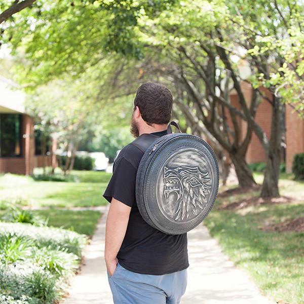 擅長融合各種電影、動漫元素推出相關周邊商品的ThinkGeek 公司在發行了「龍蛋調味料罐」、「龍母後背包」、「長爪」等有趣的作品之後,再度以超人氣美劇《冰與火之歌:權力遊戲》為題推出了實用又帥氣的「史塔克家族盾牌後背包」(Stark Shield Backpack),絕對適合史塔克家族的粉絲歐~