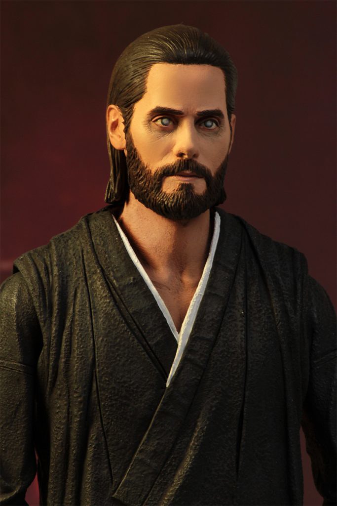 「華勒斯&樂芙 7 吋可動人偶」高約17 公分,各有25 處可動關節,也重現兩位角色在劇中的形象,華勒斯的臉部細節也頗為出色,眼球、雙眼周遭的皺紋皆精緻地形塑,很有演員傑瑞德·雷托的神韻,樂芙身穿灰色皮外套,瀏海的還原度很高啊XD~武器配件附有兩把短刀、一把手槍,把她帶回家跟警官K 一起重現那搏命的打鬥場面吧!