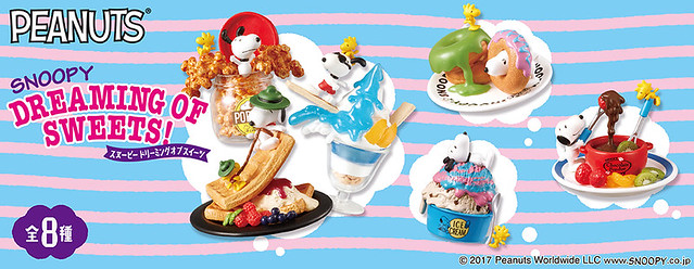 專門推出有趣味盒玩商品的日本RE-MENT品牌這次將以大人氣角色《史奴比》為題材,此次將繼續推出其「夢想的甜點篇(ドリーミングオブスイーツ/DREAMING OF SWEETS!)」(名稱暫譯)盒玩作品,把各式夢想當中才會出現的夢幻甜點都一一實現出來,像是幻想可以躺在冰淇淋床上面或是在聖代上頭衝浪,亦是可以吃著整鍋的巧克力火鍋等等,喜愛《史奴比》的玩具人可以參考一下歐!