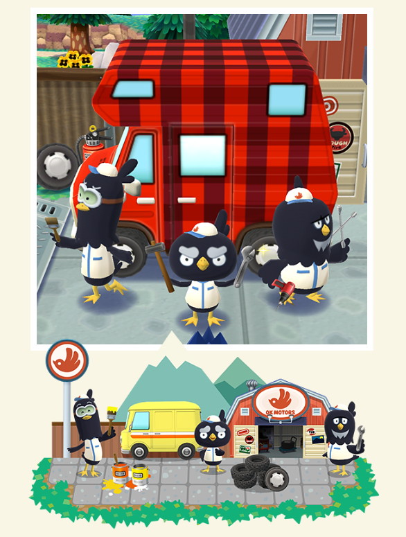 此外,玩家居住的「露營車」也能交由全新的動物角色「キャンタロー」、「ピンちゃん」、「グーさん」三位烏鴉朋友,來個從裡到外的全能大改造!可隨自己的個性、需求改造外型、色彩與內部裝潢呢!