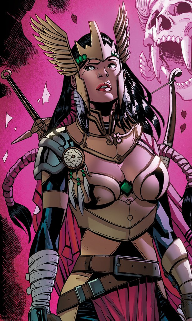 為此在漫畫裡他們跟同樣管理死者的海拉算是亦敵亦友的關係,而海拉也有給予他人女武神力量的資格,像新變種人成員Moonstar就曾因幫助奧丁的飛馬變成女武神之一,但當她失去變種人力量後,卻可以跟海拉談判要她再次給予女武神的力量(如圖)。而電影則改成瓦爾基麗軍團先跟海拉對抗,結果不幸的是反而全軍覆沒,只有布倫希爾德活著,成了宗師的奴隸鬥士捕抓者。