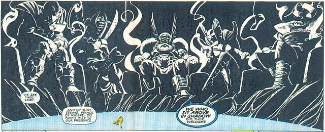在漫威的漫畫正史世界中,諸神黃昏已經發生過30 次,為何會這樣? 最主要是因為一群古神Those who sit above in shadow「坐於上頭陰影之中的那些人」必須透過吸食諸神黃昏所產生的能量來存活,因此才主導讓諸神黃昏像輪迴般不斷上演。而電影中的海拉採取這設定裡面一部份元素,改成了她吸收阿斯嘉能量越多就越強的能力設定。