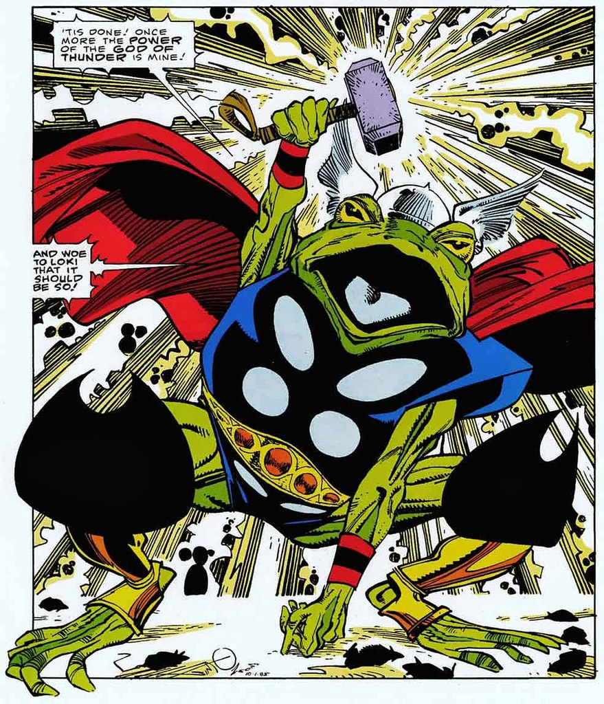 索爾說到洛基曾把他變成青蛙的事情,是參考漫畫故事的情節,當然之後還有一個獨立的「索爾蛙」角色活躍在漫威宇宙,這就等以後再談了。