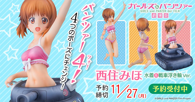 日本知名景品玩具製作公司Furyu(フリュー株式会社)旗下高品質模型品牌「F:NEX」,此次以《少女與戰車》劇場版為題材將推出「 西住美穗 泳裝&戰車泳圈版本」西住みほ~パンツァー・フォー!~水着&戦車浮き輪Ver.(名稱暫譯)。