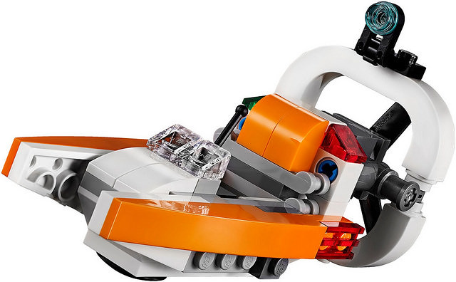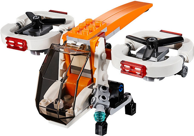 雖然名稱就是無人機,但樂高還是貼心地設計一個小座位啊~兩側圓弧形的旋翼非常漂亮,還搭載了外置的相機、降落的四腳支撐架,可以變成雙槳飛機和動力船艇。