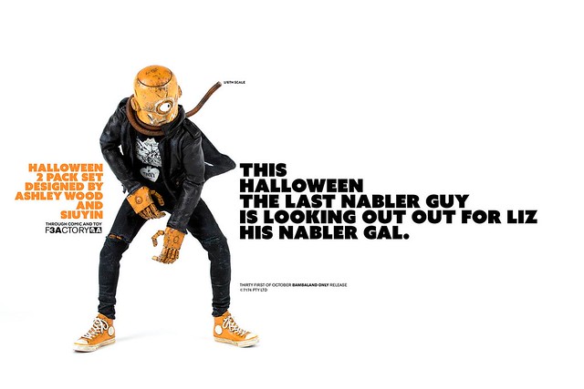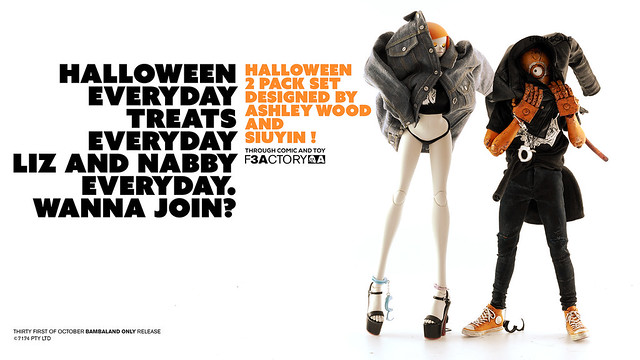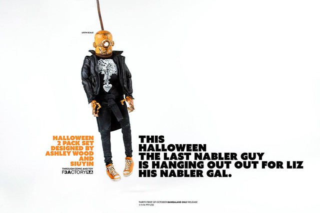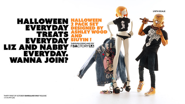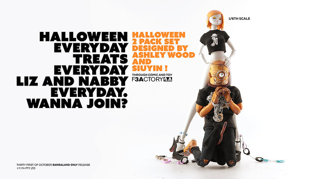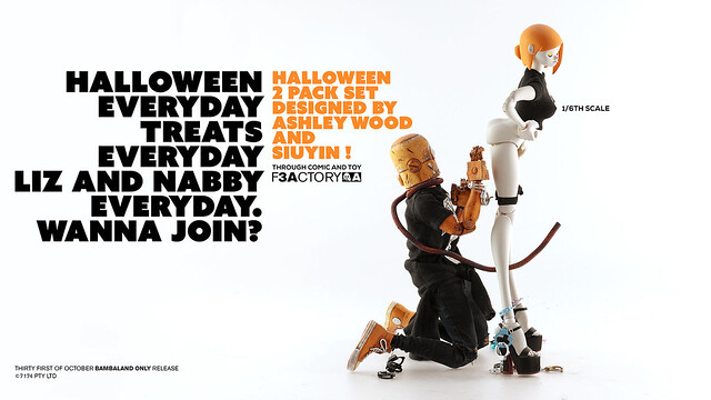 不給玩具就搗蛋~一年一度最搞怪的「萬聖節」就是明天啦~香港知名玩具廠牌threeA 也推出了一款超搶眼的萬聖節主題1/6 比例人偶作品「LIZ & NABLER GUY 雙人套組」,即將於明(31)日在Bambalandstore 網路商店展開限時24 小時的發售,喜歡這款作品的玩具人千萬要把握機會歐~