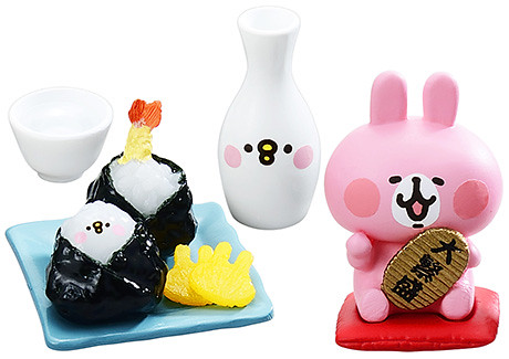 日本大人氣的插畫家Kanahei (カナヘイ)在LINE上,所推出的爆紅貼圖“P助 & 小兔兔”,兩位角色可愛又逗趣的日常生活經常引起民眾們的共鳴,這次的盒玩作品以「狹窄巷內的美食」題材相當逗趣啊!像是"不可以醃醬兩次的串炸"配的燒酒瓶有著小兔兔粉紅色的模樣,"横丁有名的食物御好燒"是蛋皮加上炒麺料理的上面是P助的美乃滋圖案等等,喜愛《卡娜赫拉的小動物們》的玩具人可以參考一下歐!