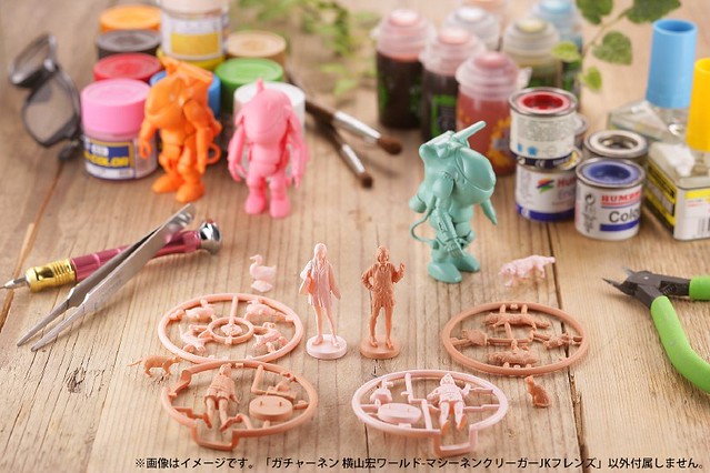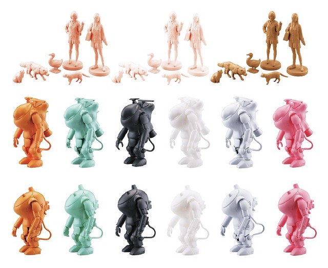這次的「1.5版本」除了有之前兩種不同款式的人氣機體外,增加有女高中生的素色人偶,以及有狗、貓、鴨等等的動物偶,都需要玩具人自己另外上色塗裝歐!此次將推出有兩種不同機體有六種配色,再加上三款人物、動物款的三種不同配色,總共推出會是約十五種類可以收集,喜愛橫山宏老師軍武作品系列的玩具人可以參考一下歐!