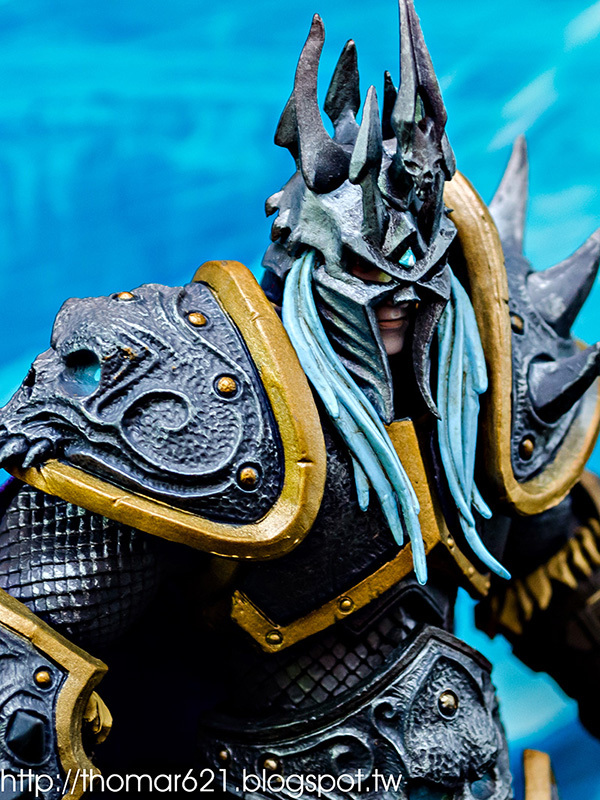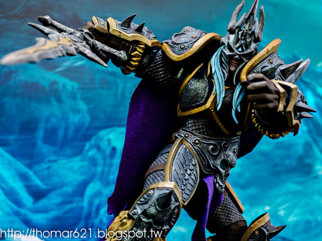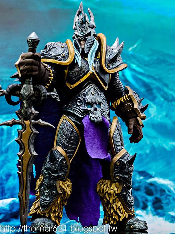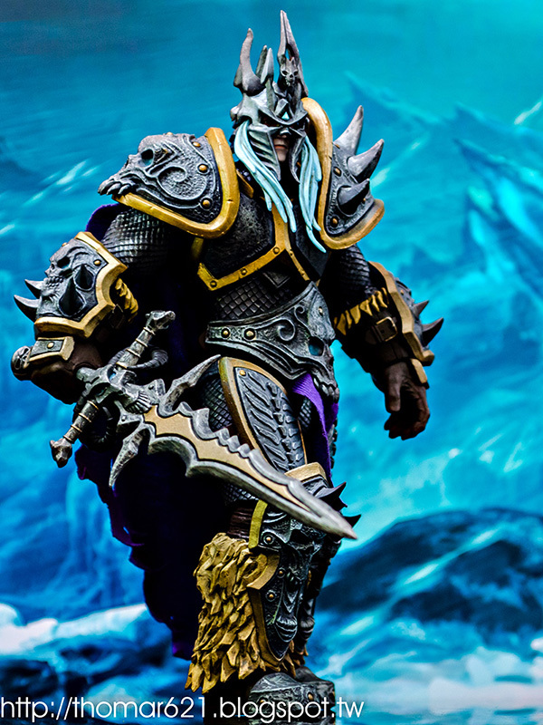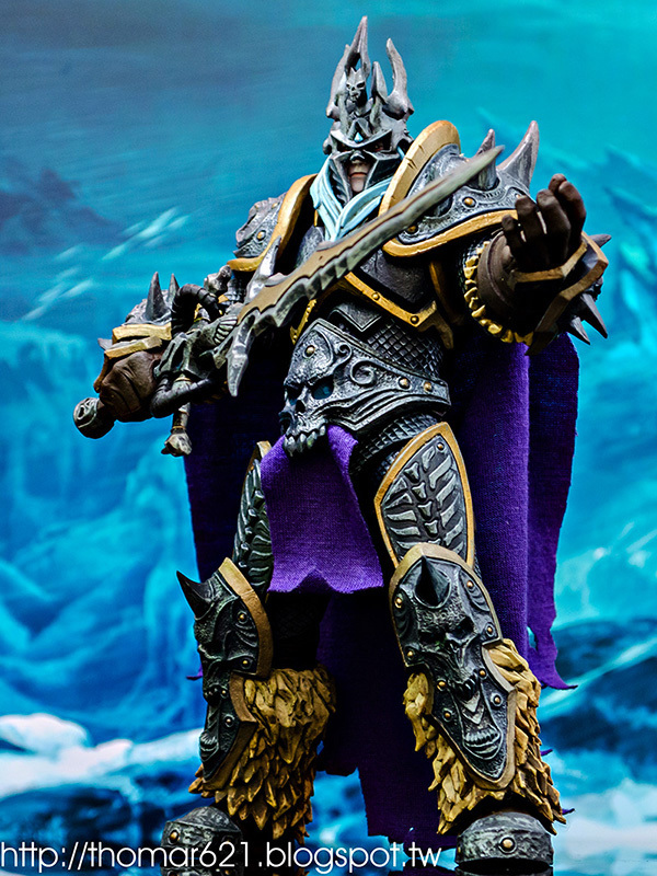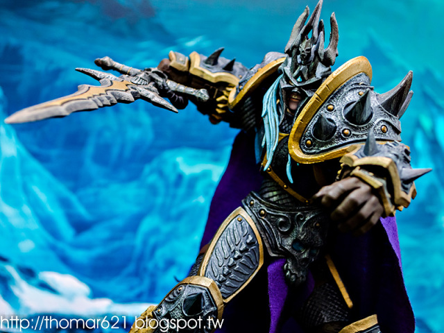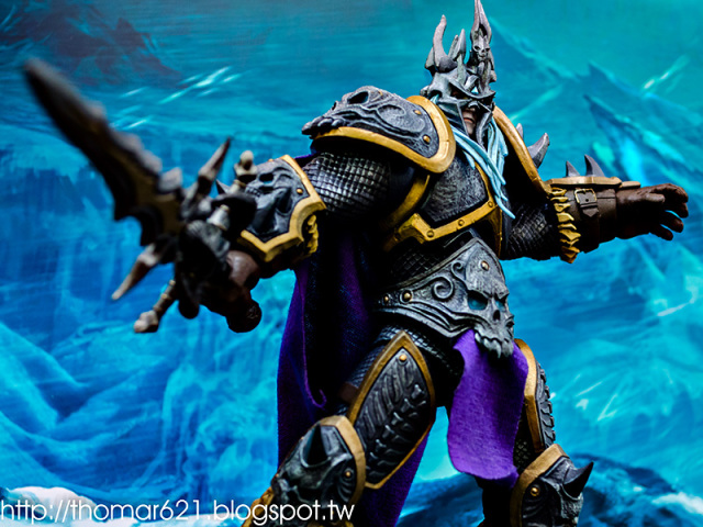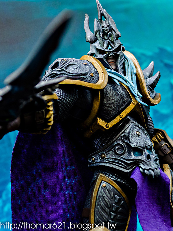相較於第一彈面癱無神的諾娃跟少了翅膀的伊利丹,對我而言這款阿薩斯頂多就少了頭盔摘下或者眼睛發光的功能而已吧,完成度比起前面兩隻跟同一波的泰瑞爾已算高了。