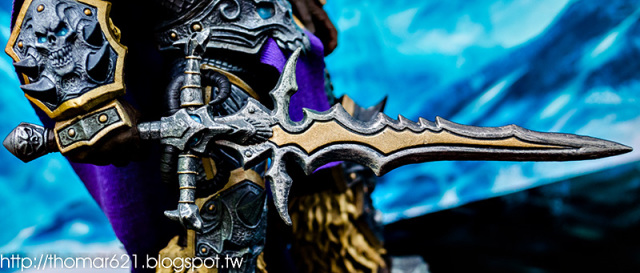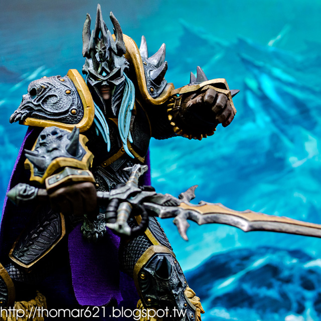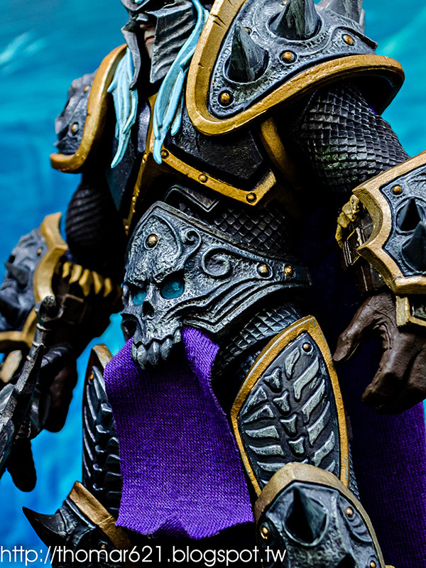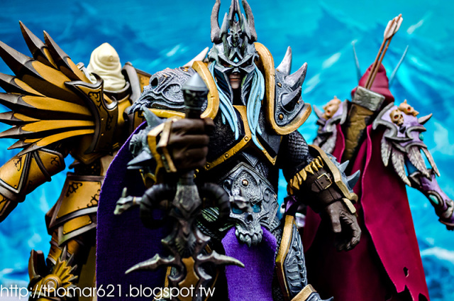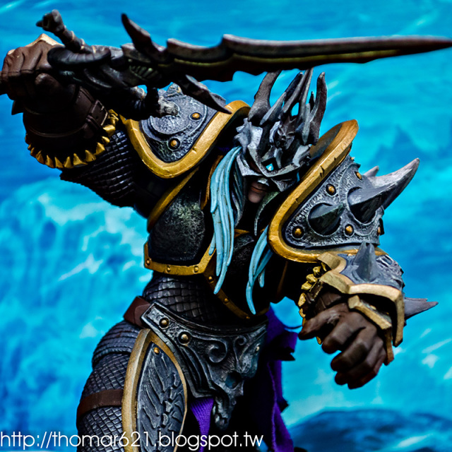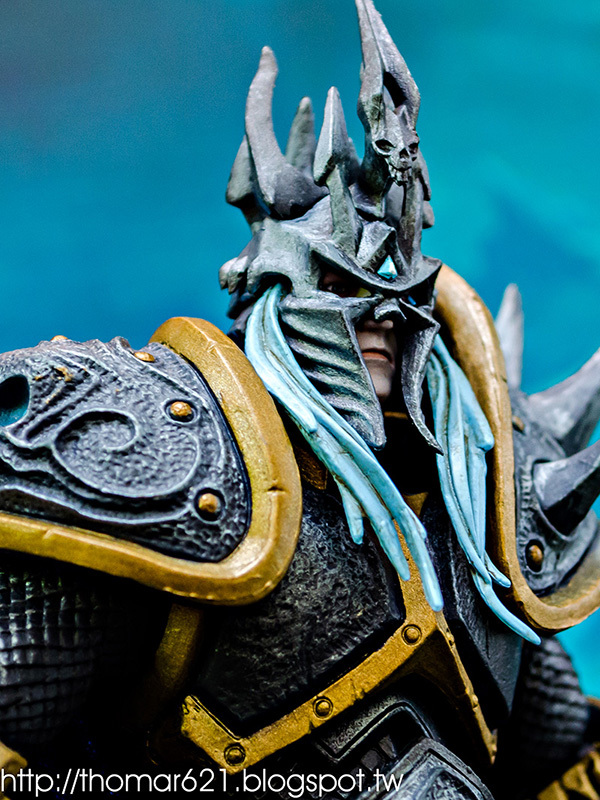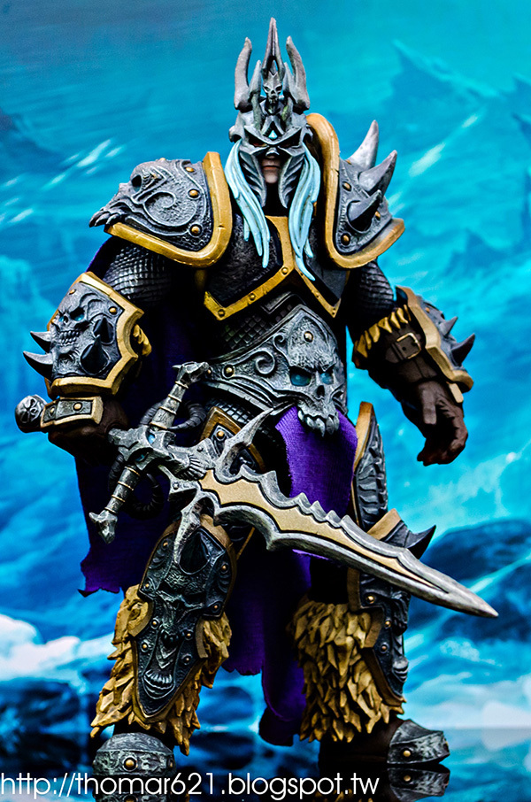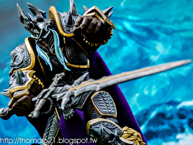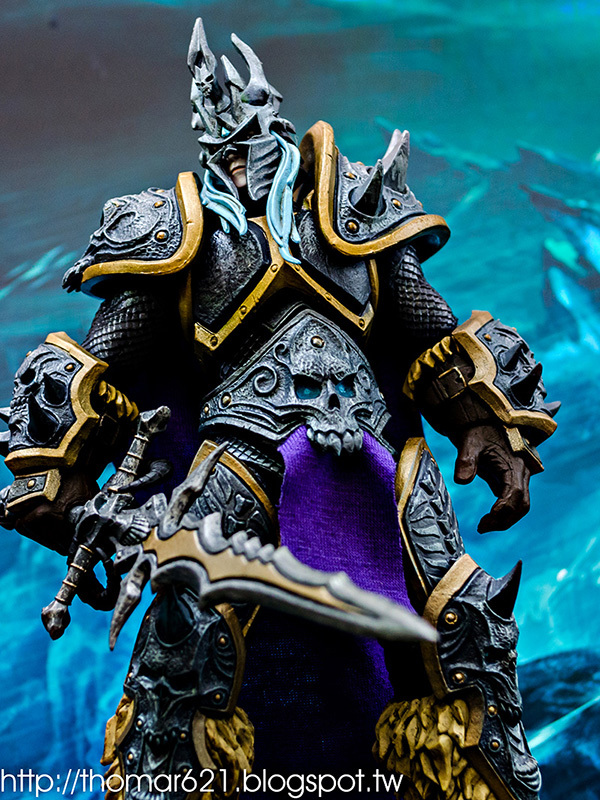 相較於第一彈面癱無神的諾娃跟少了翅膀的伊利丹,對我而言這款阿薩斯頂多就少了頭盔摘下或者眼睛發光的功能而已吧,完成度比起前面兩隻跟同一波的泰瑞爾已算高了。