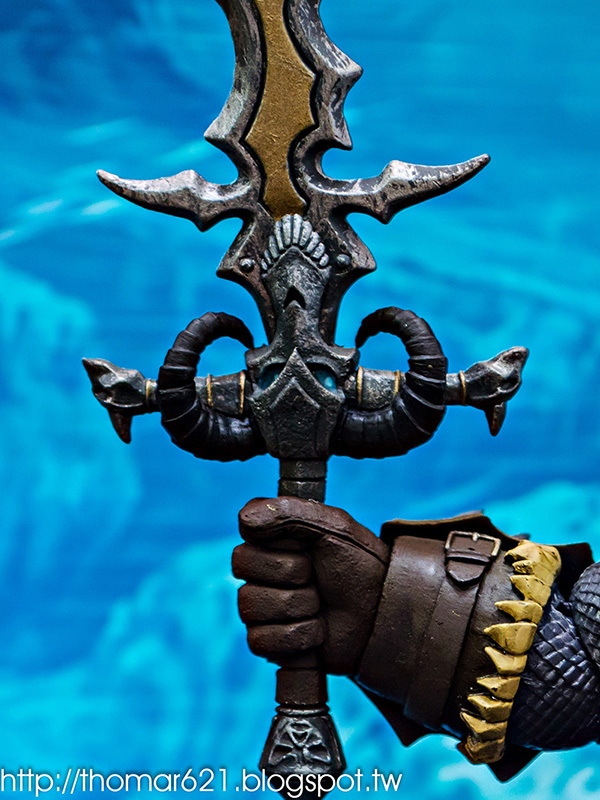 此款的內容物也很簡單,只有一個本體跟一把武器"霜之哀傷"。厚重鎧甲跟破碎布質披風的造型,可動礙於造型來說非常的差,雖然可動向來不是 NECA 特別想重視的部分,簡單內容反而令人想把目光轉去欣賞那精湛無比的雕刻跟作工上。