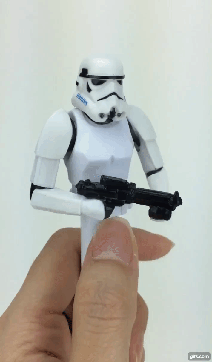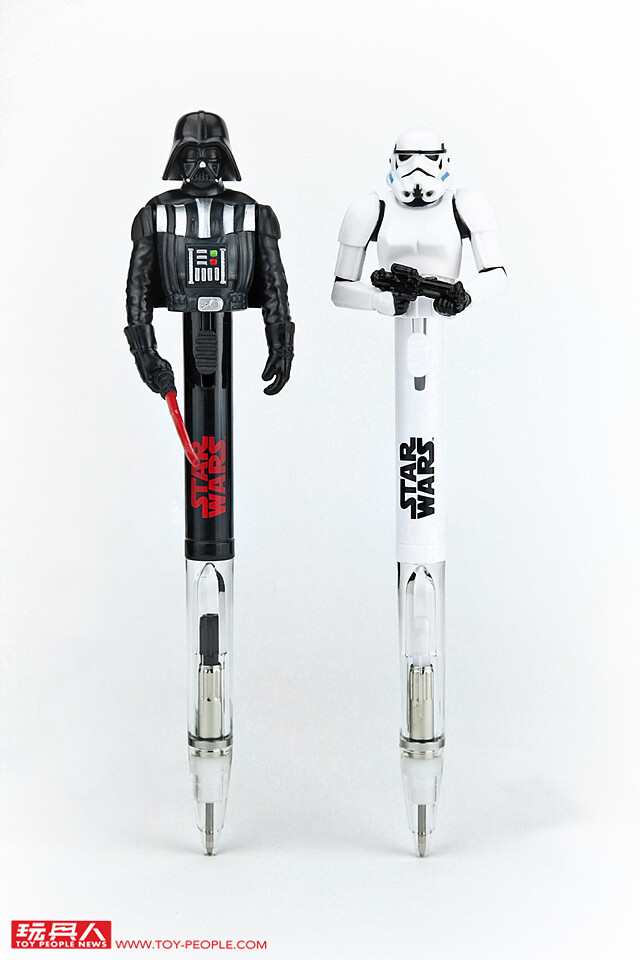 就算平常懶得寫字,相信這兩隻超有趣的黑武士、帝國風暴兵立體公仔發光筆一定會讓你重新找回提筆的樂趣,除了有超搶眼的發光筆桿,只要按下開關黑武士就會揮舞光劍、帝國風暴兵也會生動地舉槍歐~黑武士是黑色墨水、帝國風暴兵則是藍色墨水,小編已經迫不及待要來好好寫(玩)字(樂)啦!