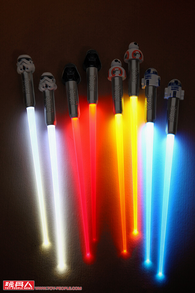 如果你是個「就連吃個飯也要當全場焦點」的玩具人,相信這限量立體公仔發光筷就是你的必備良品啦~這次的筷子包含黑武士、帝國風暴兵、BB-8、R2-D2 一共四款,小編很樂意帶著這些筷子出門吃飯啊~不僅帥氣有型還很環保,果然星戰迷就是這麼有Sence~(揍飛