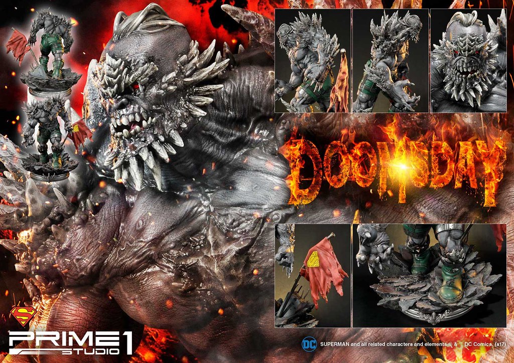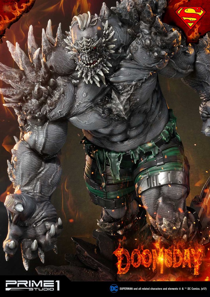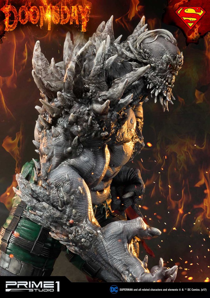 這次Prime 1 Studio 以毀滅日在超人漫畫中登場的形象來設計,並以高約97 公分的震撼尺寸來呈現,壯碩魁武的灰色軀體有著殘暴的肌肉線條、粗糙的皮膚紋理,突出的尖角、指甲具有岩石般的堅硬質感,碎裂、斑駁的痕跡看起來更為寫實,綠色的褲子、靴子也忠實再現,搭配刻畫細膩的岩石地台、破舊的旗幟,更散發出一種末日降臨的氛圍;EX 版還追加了不同型態的頭雕可以替換,那對彎彎的角看起來真的太兇惡啦