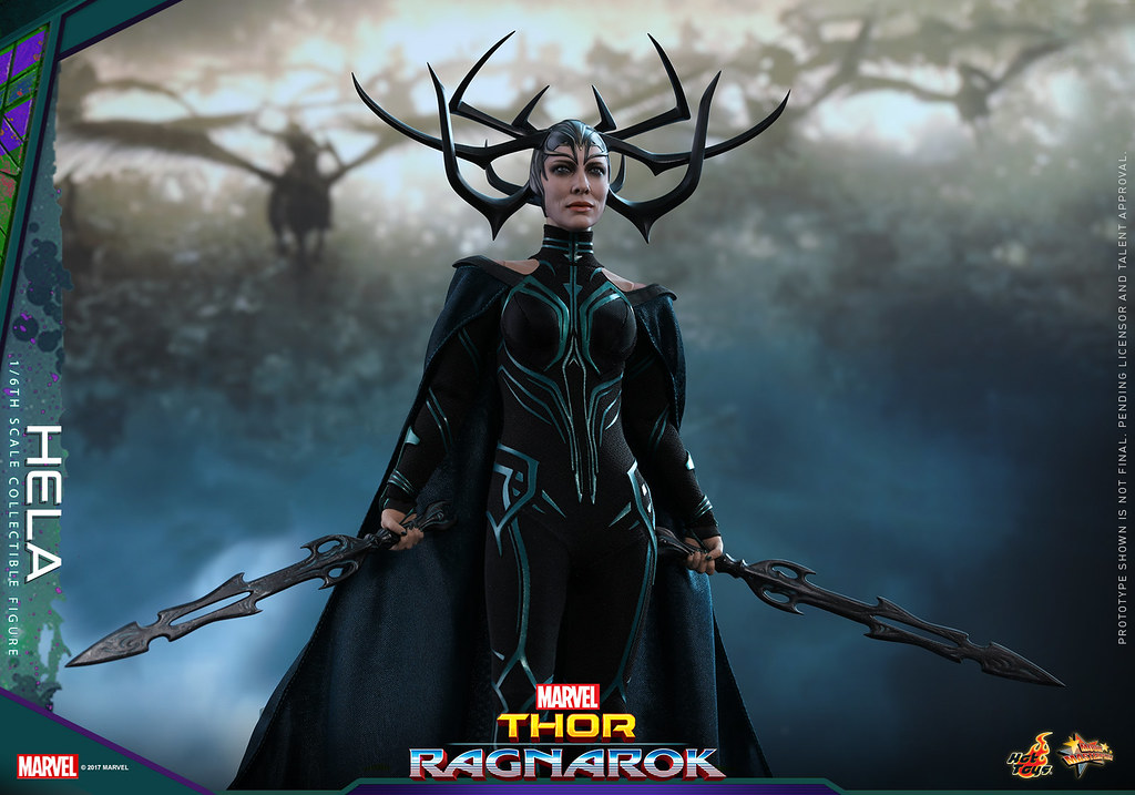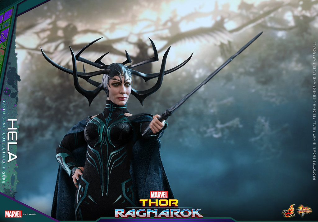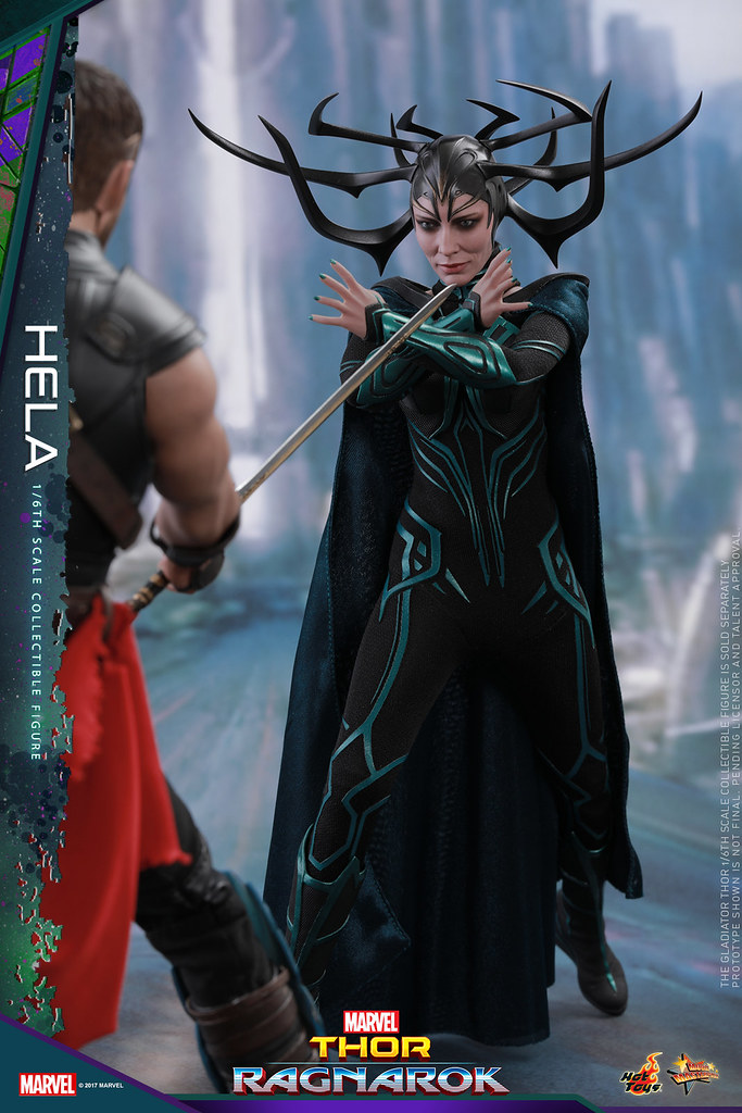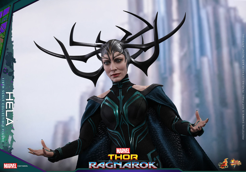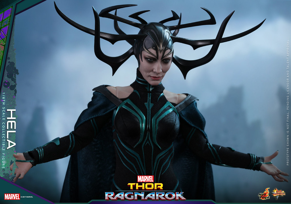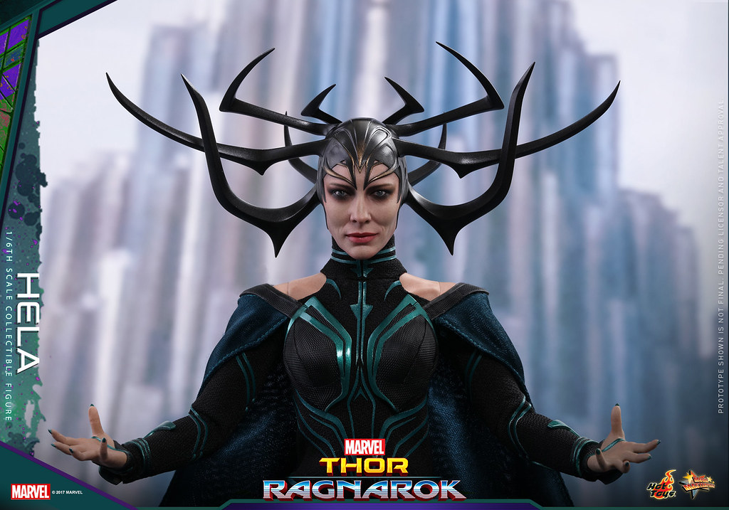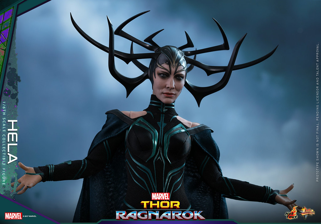 Hot Toys 《雷神索爾3:諸神黃昏》1/6 收藏人偶系列,繼MMS416 浪人索爾、MMS430 角鬥士浩克、MMS444 角鬥士索爾與MMS445 角鬥士索爾(豪華版)之後,最新作將推出本集的大反派、雷神索爾的親姊姊 - “死亡女神”海拉。