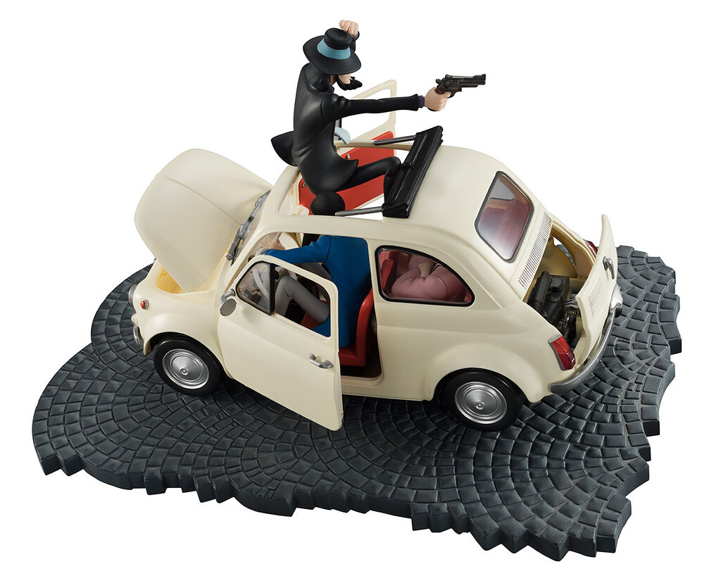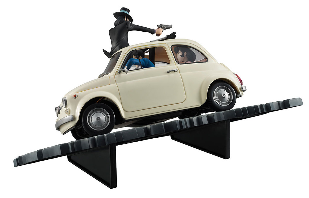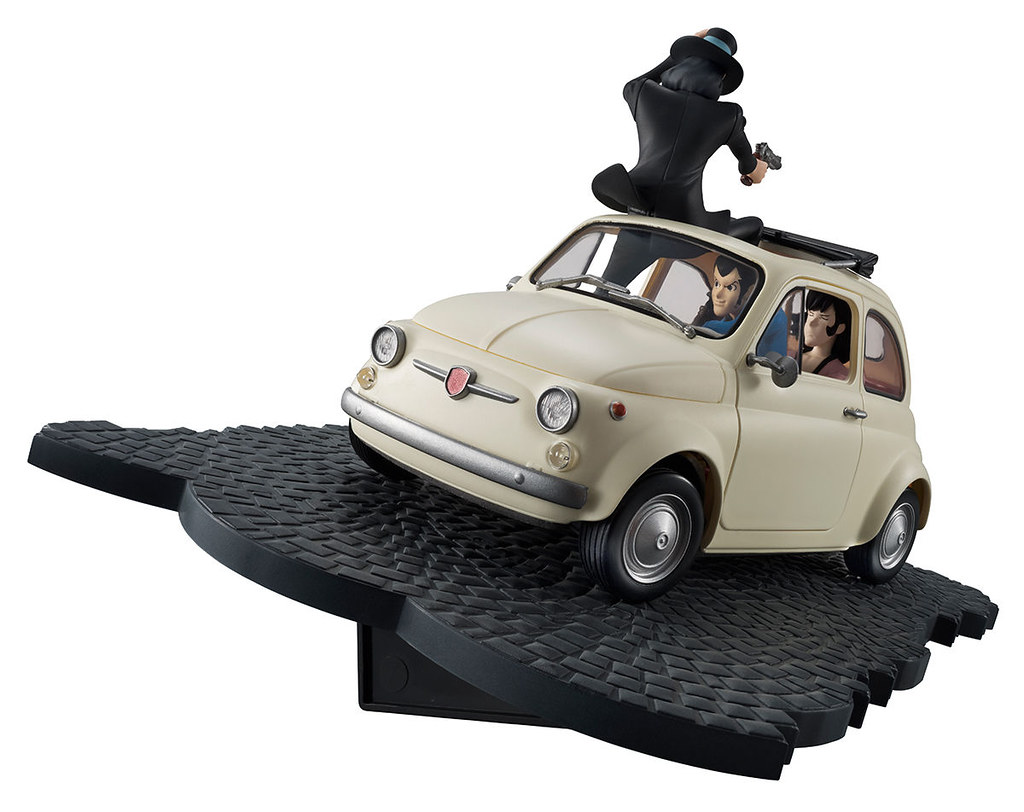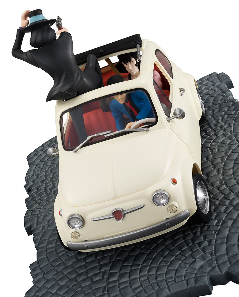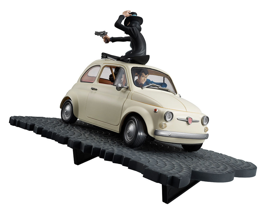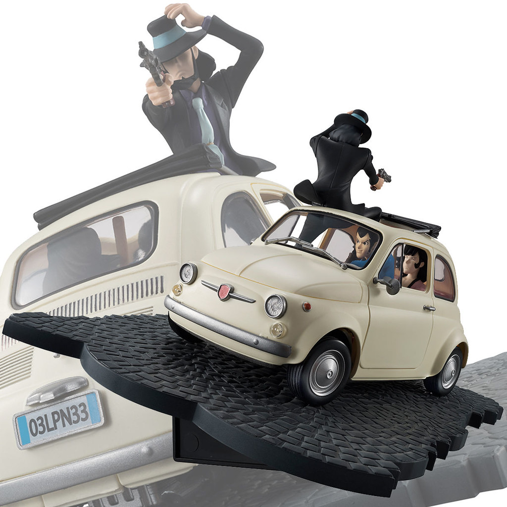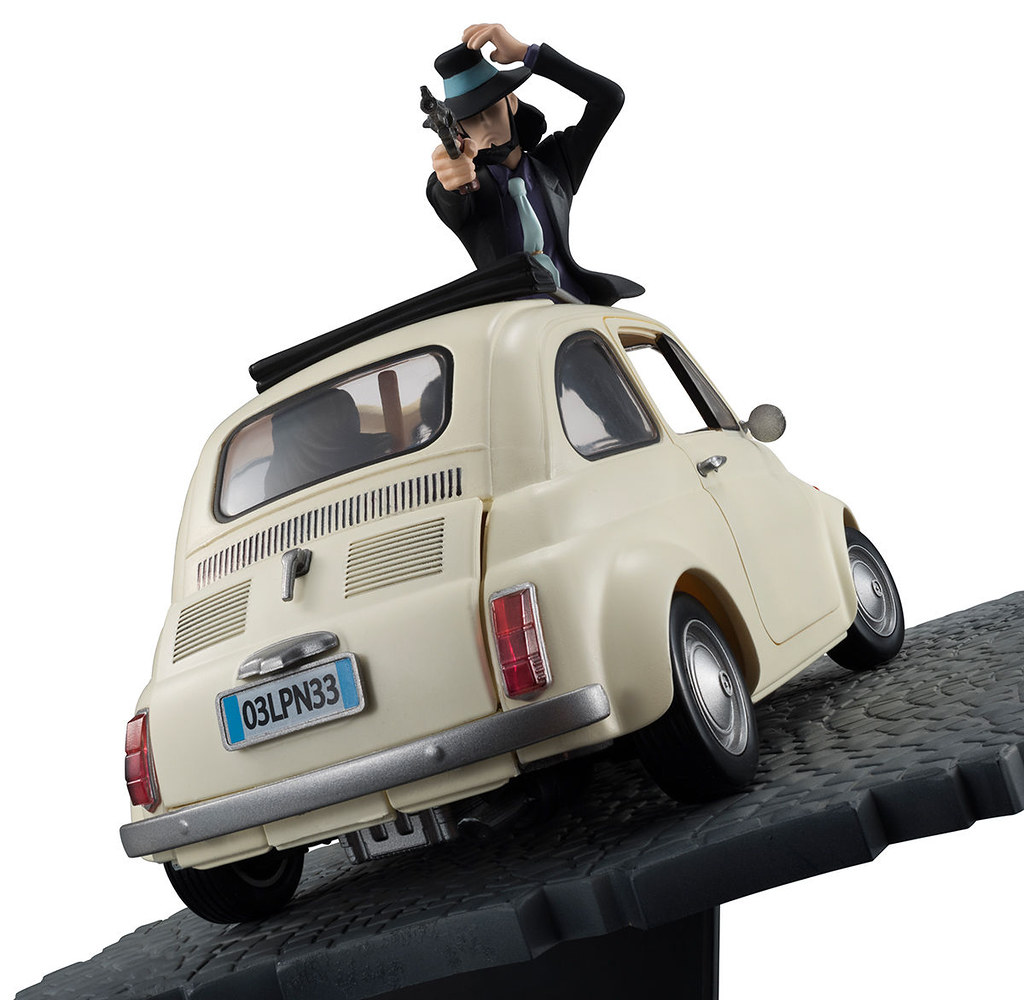 在魯邦三世 PART4(TV第4部)部登場、第一彈獲得高度好評的魯邦愛車 - 飛亞特500,將同樣繼續以複合材質來製作,以ABS與合金材質製作,呈現出更好的手感回饋與質感;飛亞特500 除了精彩的造型與極佳的材質比例之外,也內建了多重的可動式機關,包含了可掀開的車門、引擎蓋與行李廂,以及能夠與合金方向盤連動的車輪,呈現出飛亞特500 更加具備真實性的型態。