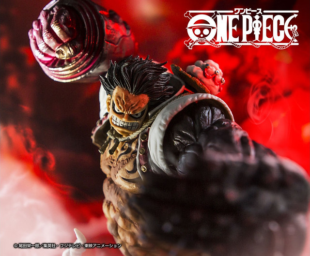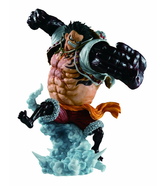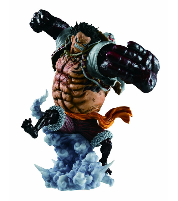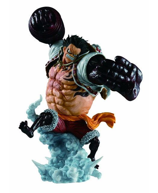 最新作「一番くじ ワンピース BATTLE SELECTION」,將以目前劇情中,A賞的獎品將以魯夫最強型態 - 四檔「彈跳人」的姿態來製作。 藉由渾身蒸發的水氣來製作底座,更加生動地重現了「彈跳人」無法站立而滯空的躍動感之外,暴漲的青筋與肌肉更強化了必殺技發動時的瞬間姿態,並使用充滿魄力的24公分超大尺寸來詮釋,讓本作擁有驚人的震撼氣勢!另外,B賞將推出四檔「彈跳人」的猿王銃Ver.,將原本A賞的四檔「彈跳人」,右手更改為猿王銃姿勢。
