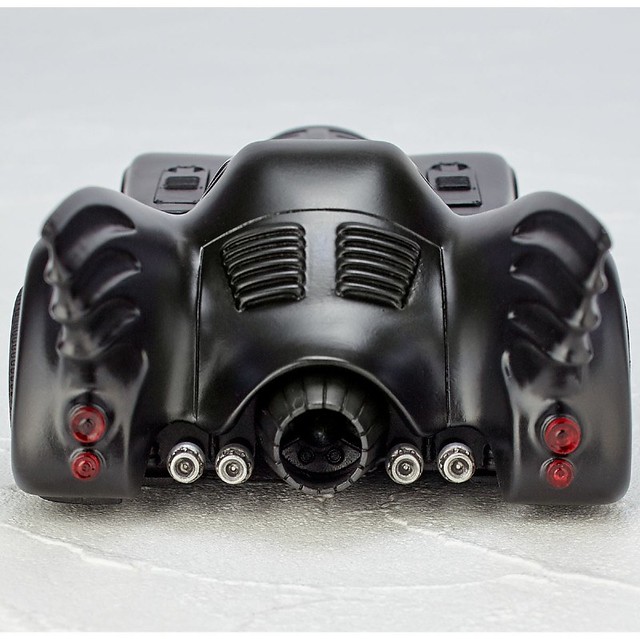 「FIGURE COMPLEX MOVIE REVO 蝙蝠車1989」將這台經典載具的造型完整模型化,除了車體的各處細節之外,內部的儀表板也十分考究,此外還追加了機槍、勾繩等等武器配件,駕駛座的頂蓋也可以往前滑動,前、後的車燈還設了LED 發光裝置,再搭配可讓蝙蝠車懸空的座台,展示起來更有氣氛啦~大量精緻的造型細節加上豐富的內容,絕對能夠輕鬆再現電影裡的帥氣姿態!非常值得喜愛蝙蝠俠的老影迷們珍藏歐~