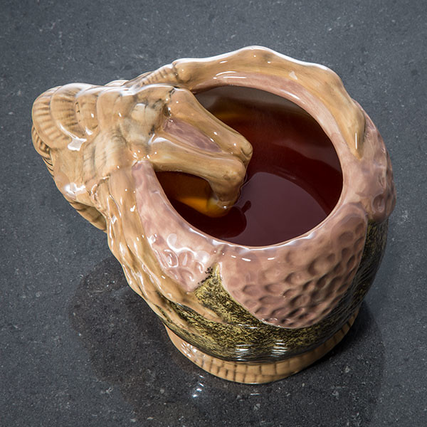 「ThinkGeek 抱臉體馬克杯」把異形的噁爛氣息完整地在馬克杯上展現,小編很懷疑真的有人會想使用嗎?杯身就是一顆打開的異形蛋,並有著精緻的表面形塑,與馬克杯底座相連的手把則採用抱臉體來設計,所以握著的其實就是抱臉體的尾巴,實在太有趣了!細緻的上色也把抱臉體骨骼那黏糊糊的質感表現出來,整體的造型相當搶眼!如果哪天有個不請自來的客人,就端出這款抱臉體馬克杯來好好「招待」他吧!