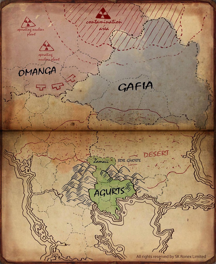 但是,在位於北方的第一代核電廠爆炸之後,導致奧曼加遭逢了嚴重的核污染;大量的放射性污染隨著大氣而擴散至奧曼加的半數領土甚至鄰國“格裴亞”(Gafia),使得許多難民為了尋求治療與庇護紛紛從北方逃離至南方;瞬間產生的龐大資源缺口與核污染完全失控所帶來的壓力,讓奧曼加政府轉為採取激進的手段 – 侵略鄰國格裴亞(Gafia)與亞格斯(Agurts)。
