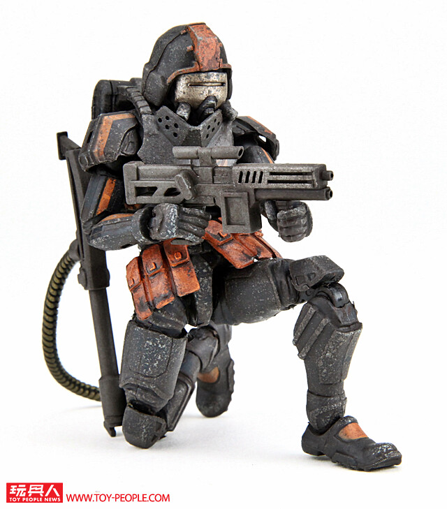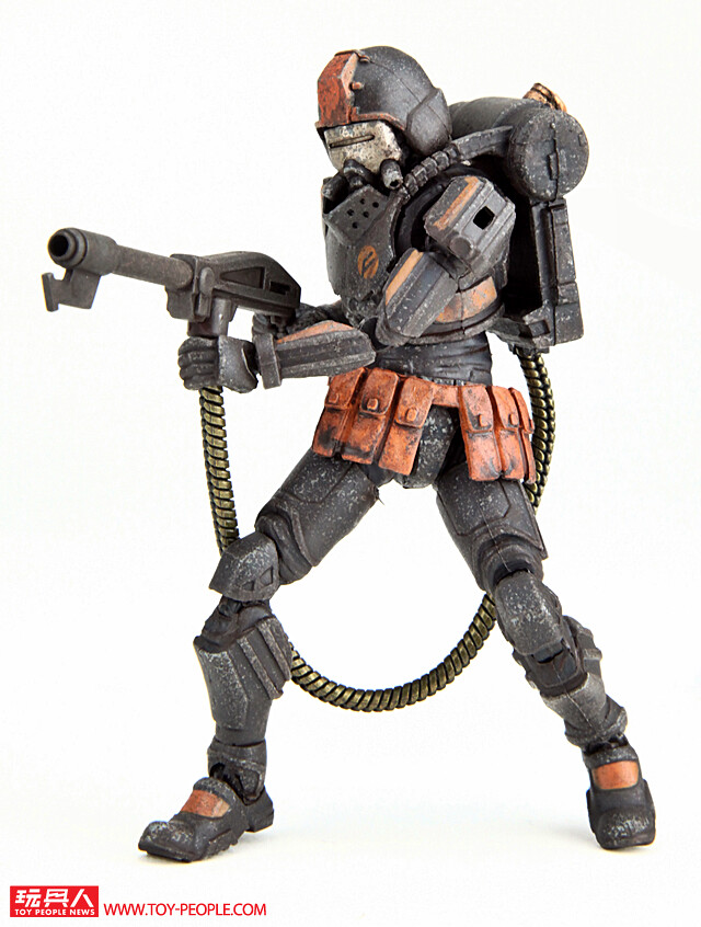 ▼ 火焰士兵的裝備基本上與“地獄部隊”相同,以象徵地獄之火的橘紅色作為識別配色;頭雕則是為了火焰士兵必須防止因火焰的高亮與高溫而影響視覺,所製作的全新頭雕造型。