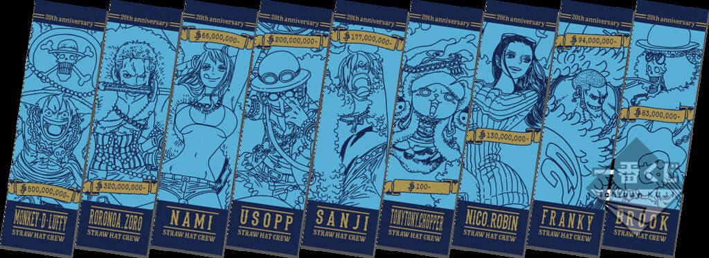 ▼ 「草帽一夥」至今的九位成員,全部以20週年限定的藍色、墨綠色造型登場!全套集齊想必是個大難關啊~~~