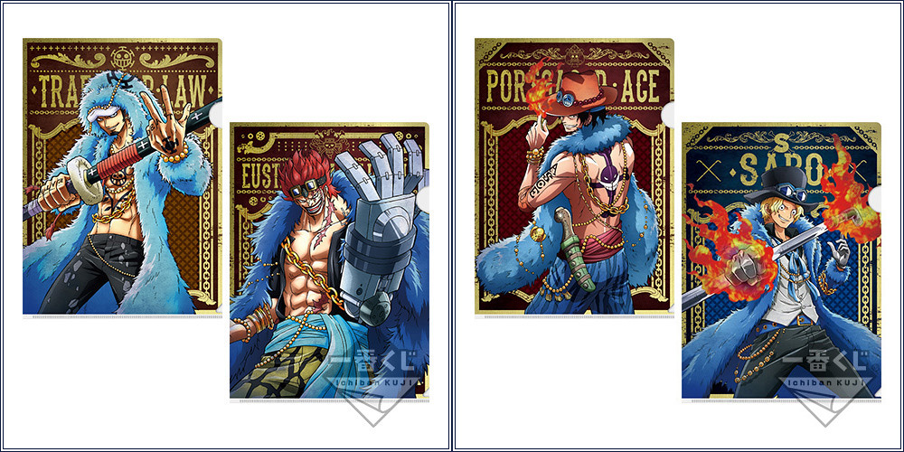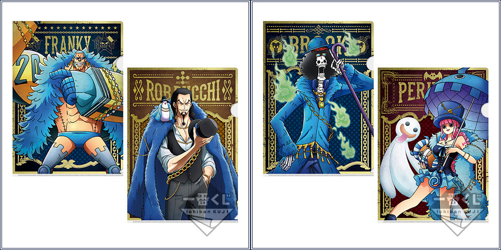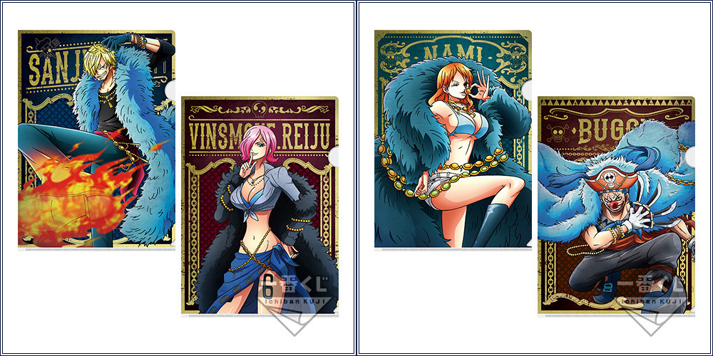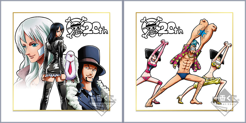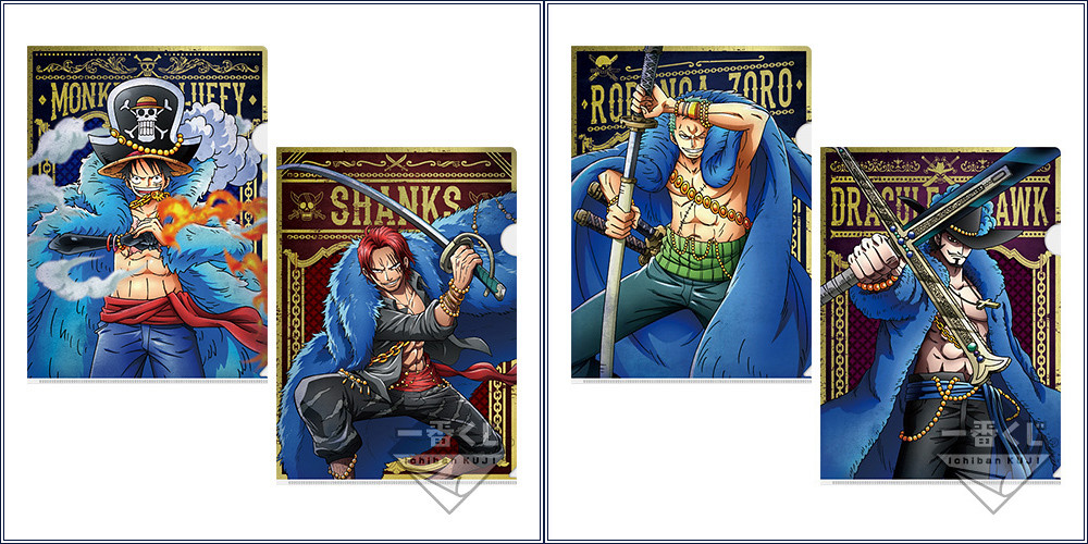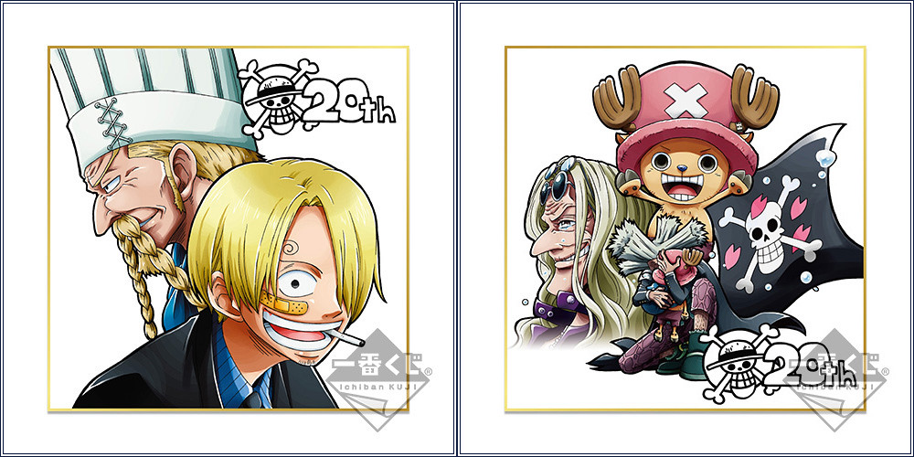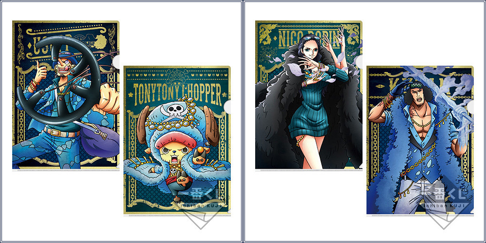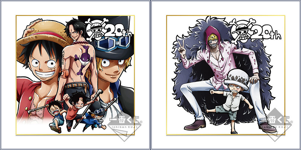 J賞則是將20週年紀念插畫的「草帽一夥」每位角色設計為毛巾,並且搭配上20週年紀念的主視覺藍色;K賞則是特別紀念色紙,一共14款濃縮了魯夫從出發至今的各個經典場面、難忘回憶作為圖面設計,並附上展示用腳架,絕對是忠實粉絲們必備珍藏!L賞則是集結了「草帽一夥」在內、全作至今令人難忘的28位角色,以20週年紀念的藍色皮草大衣造型印製為透明檔案夾組,每個組合的角色們還彼此有相呼應的主題!