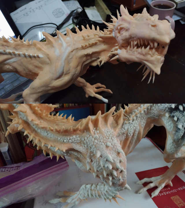 運用不同粗細的管子壓出不規則的鱗片,並順著肌肉走向調整鱗片的分布