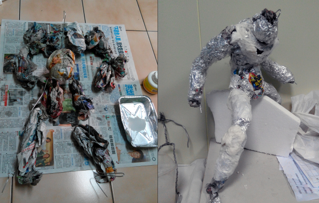 1.一開始先設定骨架比例與造型大小(使用報紙、樹脂與鋁線)