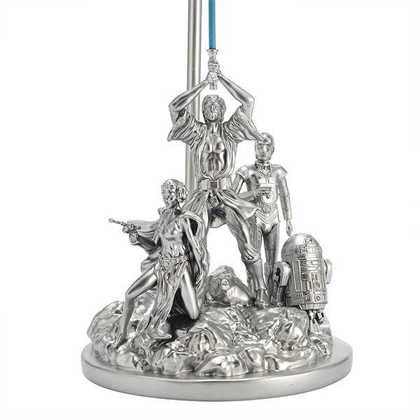 「Star Wars 曙光乍現立體造型檯燈」高約45.7 公分,以高超的雕刻技法將人物的服裝皺摺、機器人的線條紋路精準再現,路克高舉他的藍色光劍,也象徵著他即將踏入絕地武士之路,莉亞公主手握爆能手槍,再搭配兩個吉祥物R2 跟C3PO,這樣的經典組合實在非常令人懷念,絕對是老星戰迷不可錯過的具家必備良品啊!