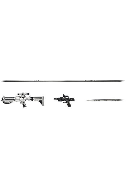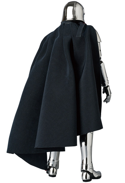 「MAFEX 法斯瑪隊長」有著超亮眼的銀色盔甲,以會反光的材質來塗裝,彷彿從垃圾處理機重生了一般相當乾淨、閃亮,布料的紅邊披風也讓法斯瑪隊長更加帥氣了,武裝部分除了專用的-11D 雷射爆能槍之外,還有可裝備在右腿槍套的手槍,以及新規造型的銀色長矛,搭配多對替換手型就能再現她被威脅帥氣的姿態!
