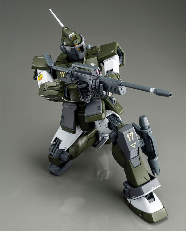 「MG 1/100 吉姆狙擊特裝型(Tenneth A. Jung 機)」以一般版本為基礎,將成形色替換為 Tenneth A. Jung 機特色的深綠基調,新規水貼紙中更包含「雙髻鯊個人標誌」等多種新標誌!武裝中除了R-4型狙擊步槍、二連發光束槍、光束噴槍、超絕火箭炮、折疊式手槍、盾牌、光束軍刀等豐富武裝外,也新增了此機長砲身、高精度的特色武器「L-3 光束狙擊步槍」。