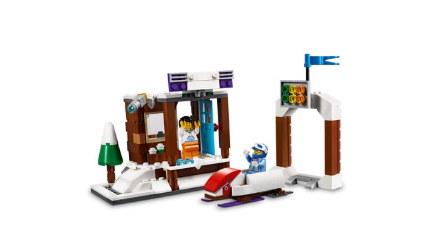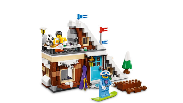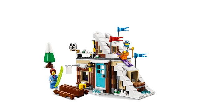 最後則是模組化的冬季度假小屋場景,最大的特色就是房子的一邊完全是斜坡,可以直接從屋頂滑下來,恩~實在是很奇妙的設計,只是可能受限於零件的數量,三種組裝方式都給人不太完整的感覺,可能要多買幾組來搭建出漂亮的模型;也因為是創意系列中模組化的set,所以可以跟其他模組化的小屋混合遊玩,說不定會有意想不到的絕妙搭配喔~