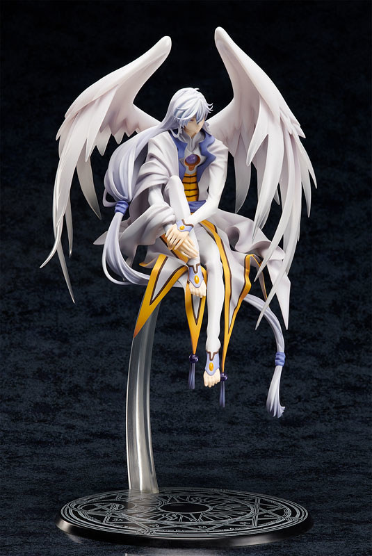 「月 1/8比例模型」再現原作漫畫風格,露出他無感情卻充滿魅力的表情,造型躍動的銀色長髮延伸到腳邊,白色服裝細膩的皺摺呈現寬鬆、柔軟的質感。巨大的白色羽翼則使用透明材質製作,美麗的造型充滿層次,讓人感覺透光、輕盈,印有魔法陣的底座讓作品更顯得高級!