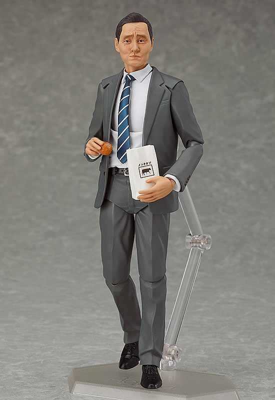「figma 井之頭五郎 松重豐ver.」以日劇版的造型為基礎,造型、色彩通過官方監修,表情零件收錄招牌的「微笑臉」與「股嘴臉」,透過 3D 上色技術讓皺紋、眉毛...等特徵都極為真實!配件則附上了精緻的「公事包」、「炸肉餅」。