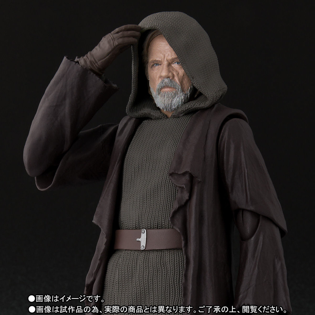 「S.H.Figuarts 路克·天行者(THE LAST JEDI)」高約15 公分,忠實再現了劇中的造型,頭雕部分更以數位塗裝技術在約2 公分的長度裡刻畫出演員馬克·漢米爾的神韻,淡棕色的頭髮、灰白的落腮鬍都十分精緻,連身的帽子也有戴上、脫下兩種狀態可以替換,整體的服裝色調偏暗,由墨綠、深褐、黑色搭配,左右手各有握拳、開掌兩種替換手型,還追加了專屬的配件,一定要跟「芮」、「凱羅·忍」一起入手把玩啊!