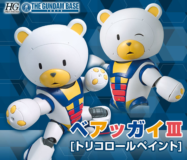 由日本BANDAI萬代玩具公司發行的眾多「鋼普拉」系列商品中,機體種類最為齊全並 還原動畫中形象的「HG(High Grade)」系列,再度發表了只有在官方專賣店「GUNDAM BASE」限定販售的最新商品「HG 1/144「熊亞凱III」[鋼彈三原色]」預計於 2017 年 12 月 06 日發售的消息。