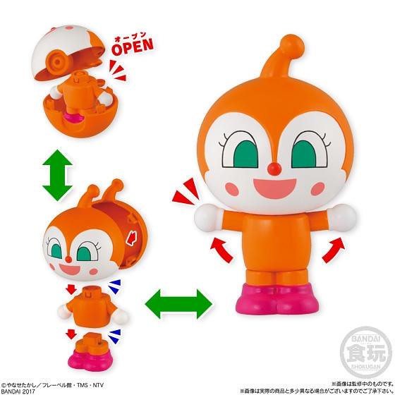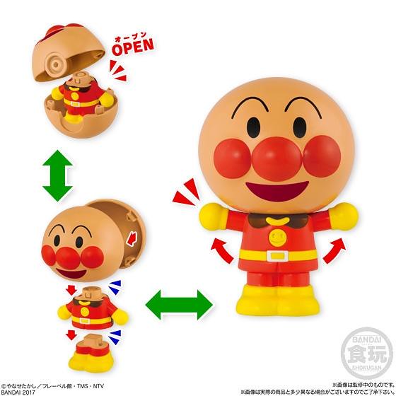 日Bandai萬代玩具公司的食玩事業部門這次將以大朋友小孩們都喜愛的《麵包超人》為題材,來推出一款逗趣的「麵包超人 變身盒玩(くみたてよう! アンパンマン)」(名稱暫譯),這次將角色身上配件像是身體與手部、腳部等等配件,都設計可以包覆在大頭內部裡頭,很像是之前推出過環保轉蛋殼系列的創意,預計將會推出約有四款故事中登場的不同角色人物,喜愛《麵包超人》系列作的玩具人可以參考一下歐!